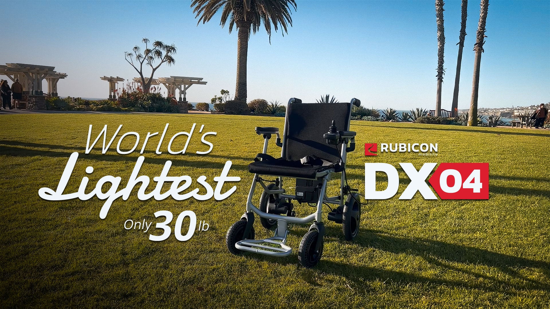 The Rubicon DX04 is the world's lightest foldable power wheelchair, weighing only 30 pounds.