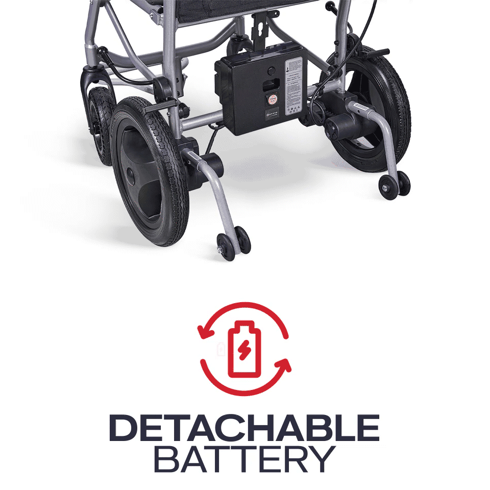 Equipped with a 10AH Lithium-Ion battery, this electric wheelchair is airline-compliant, ensuring hassle-free air travel. The battery delivers a range of up to 10 miles on a single charge, allowing seniors and disabled adults to maintain independence throughout the day, whether at home or traveling far.