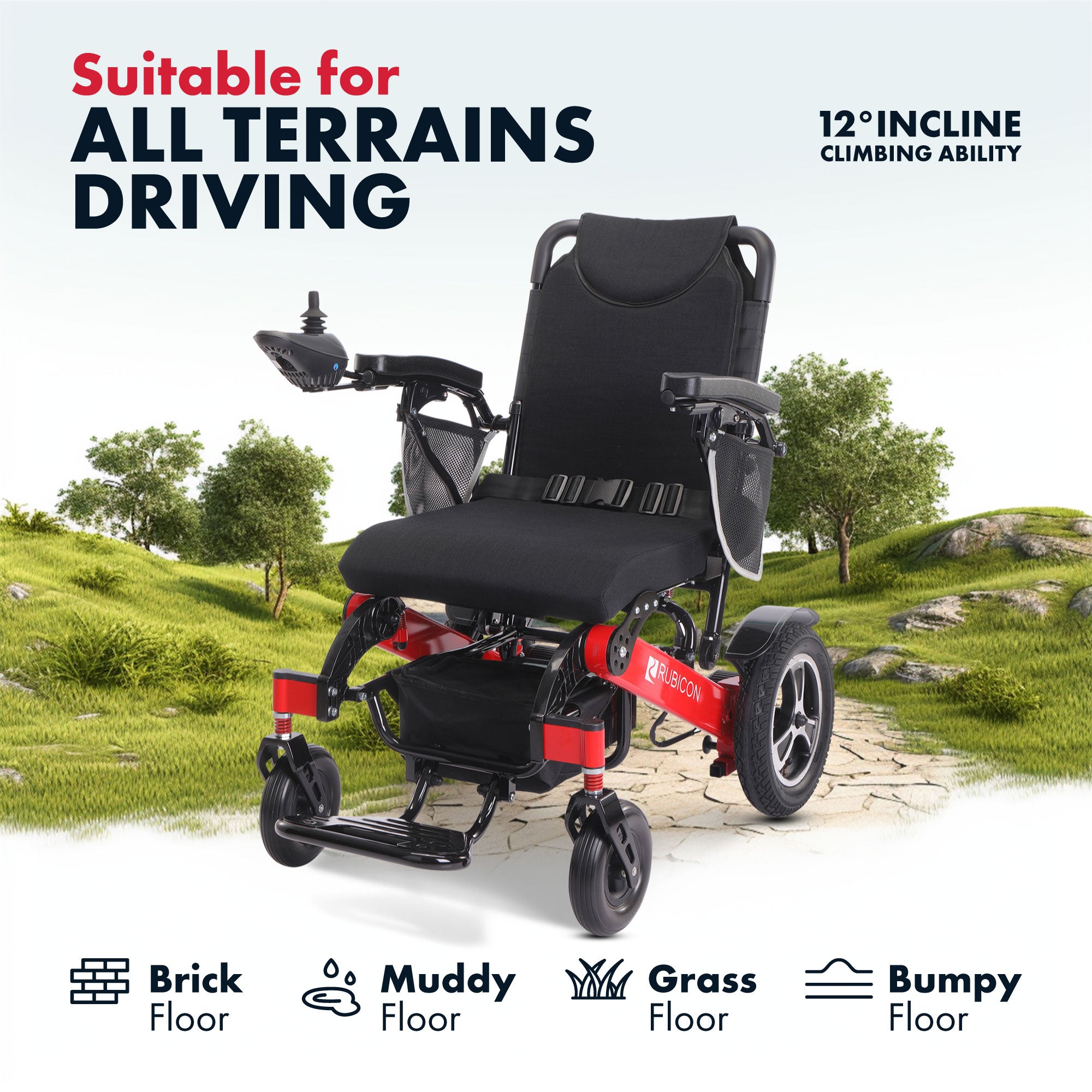 Rubicon DX14 - Premium Longest Range Electric Power Wheelchair with 20-Mile Range | All-Terrain, Lightweight, Foldable & 600W Dual Motors